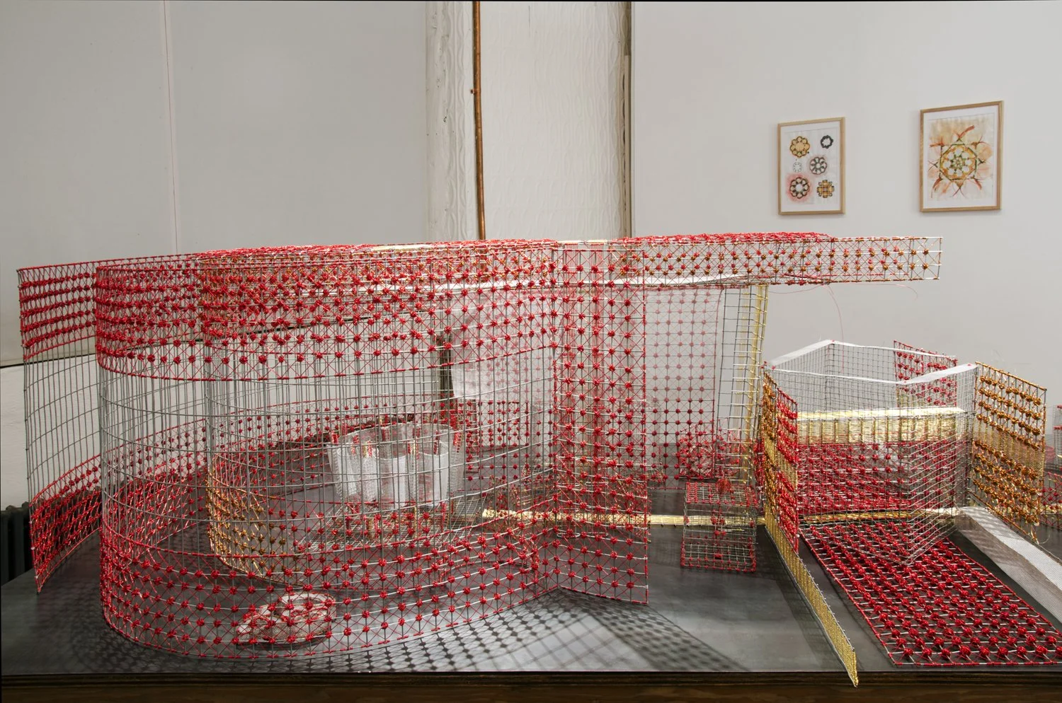 “CosmicScapes”; 2013; Front Room Gallery; Poly copper wire, brass, aluminum, steel, welded fabric, wood; 60” x 48” x 96”