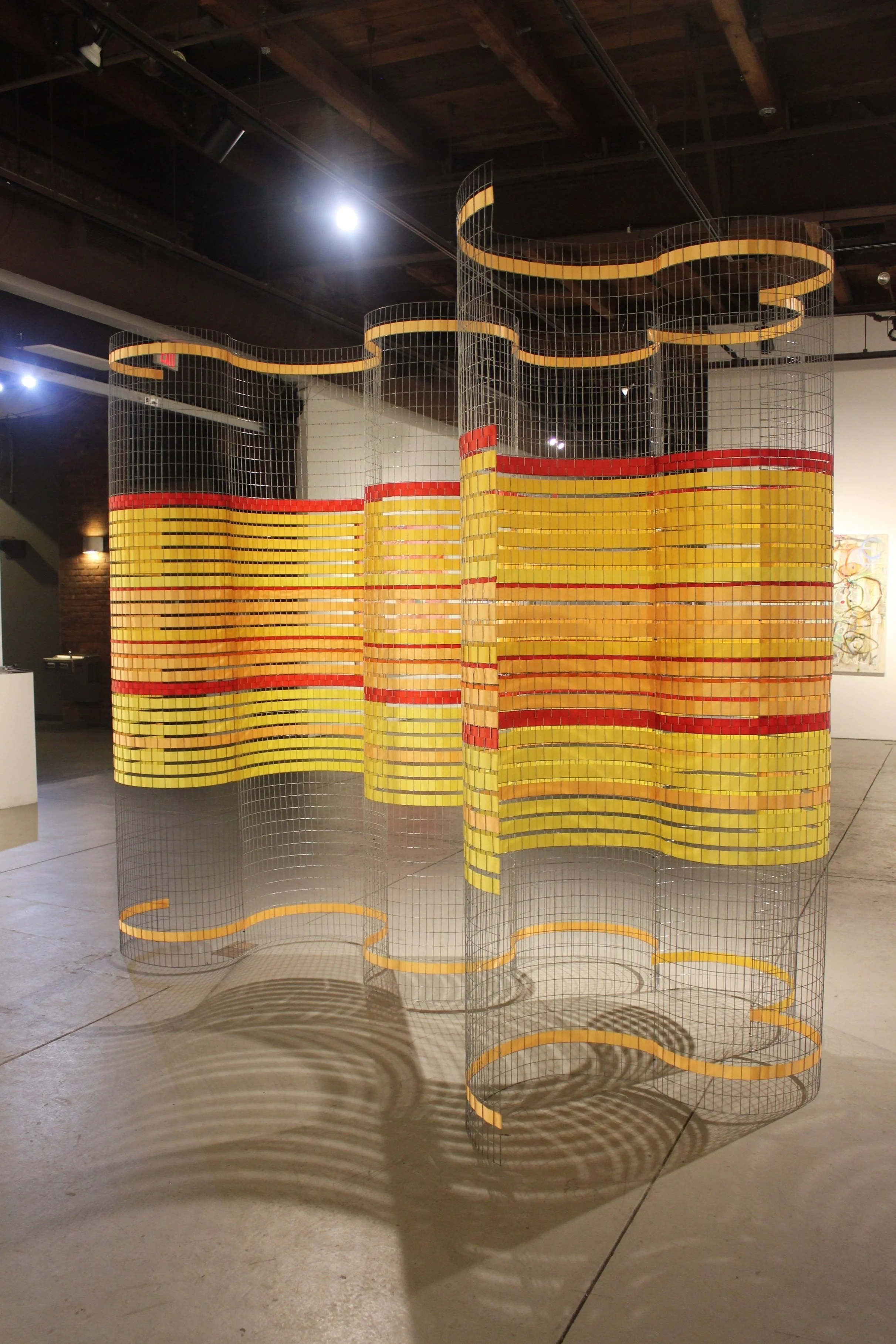 (Detail): Satin ribbons woven onto welded fabric; 192” x 216” x 288”