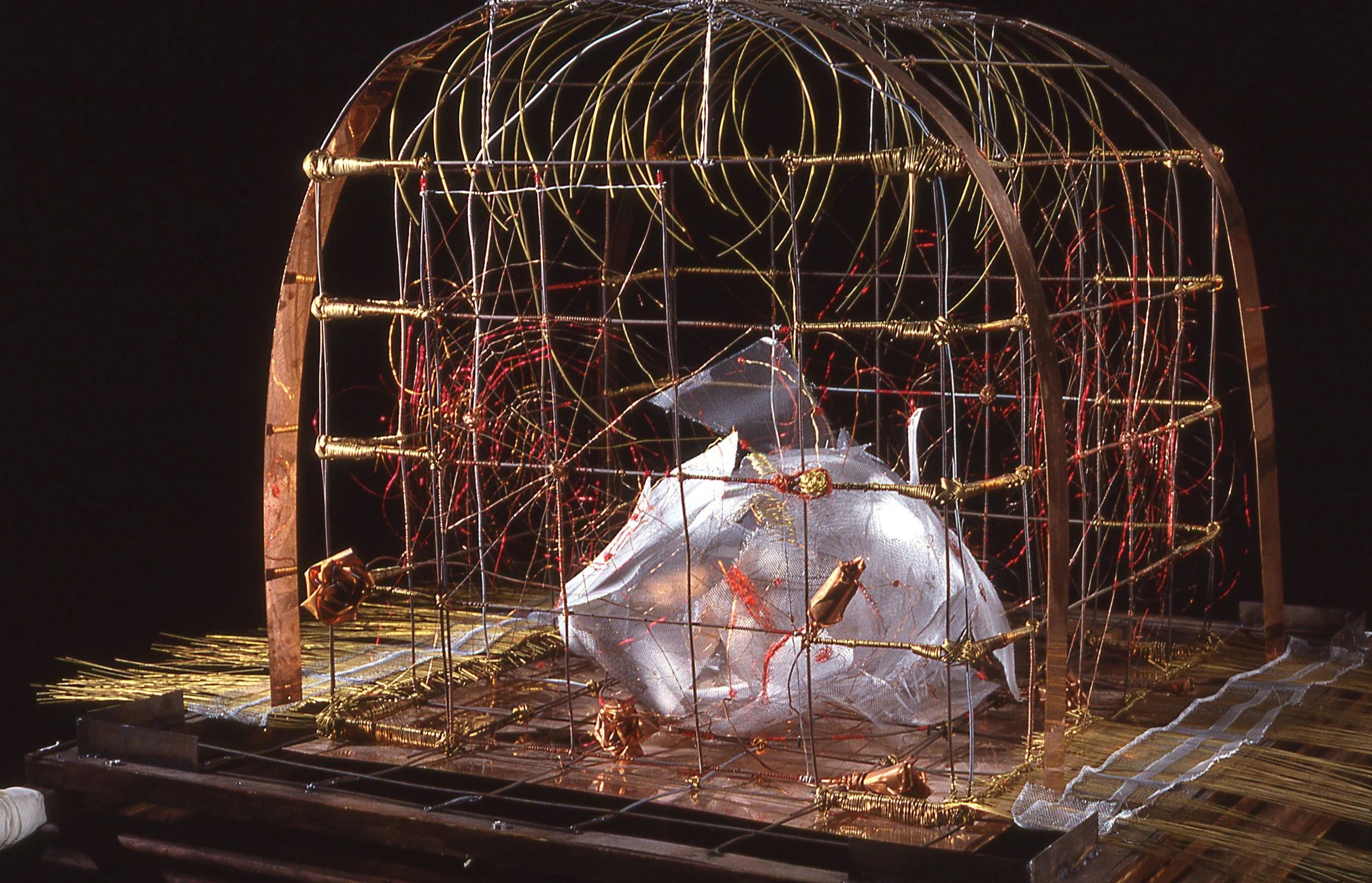 (Detail): Copper, brass, steel, aluminum fabric, welded fabric, wood, cloth, poly-coated copper; 48” x 96” x 72”