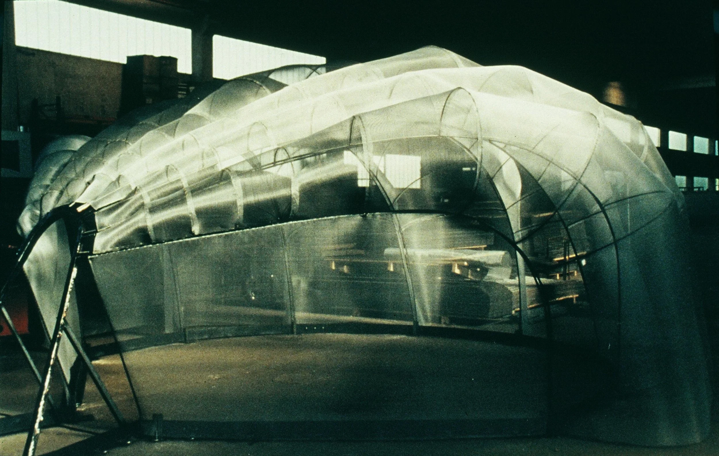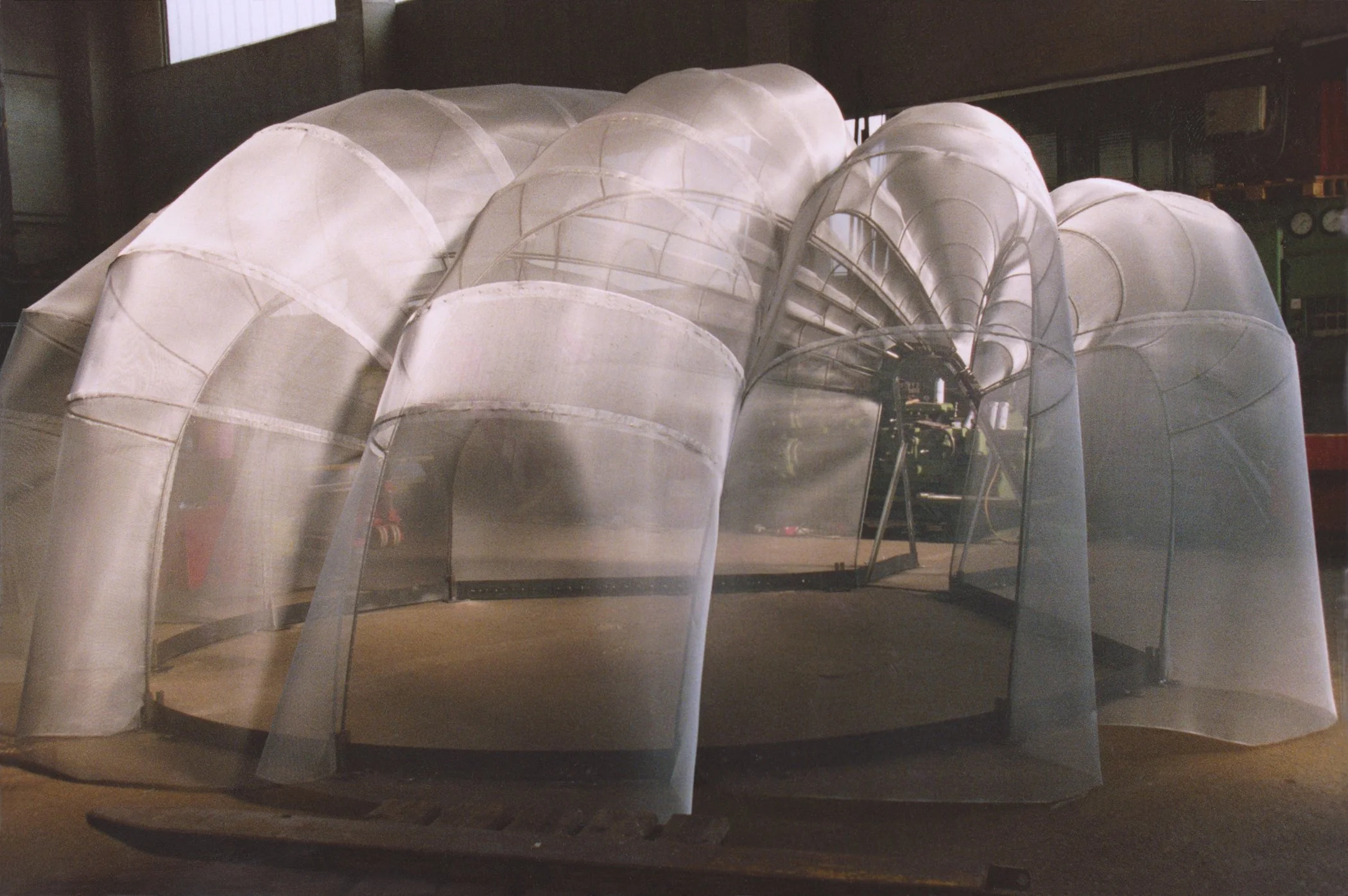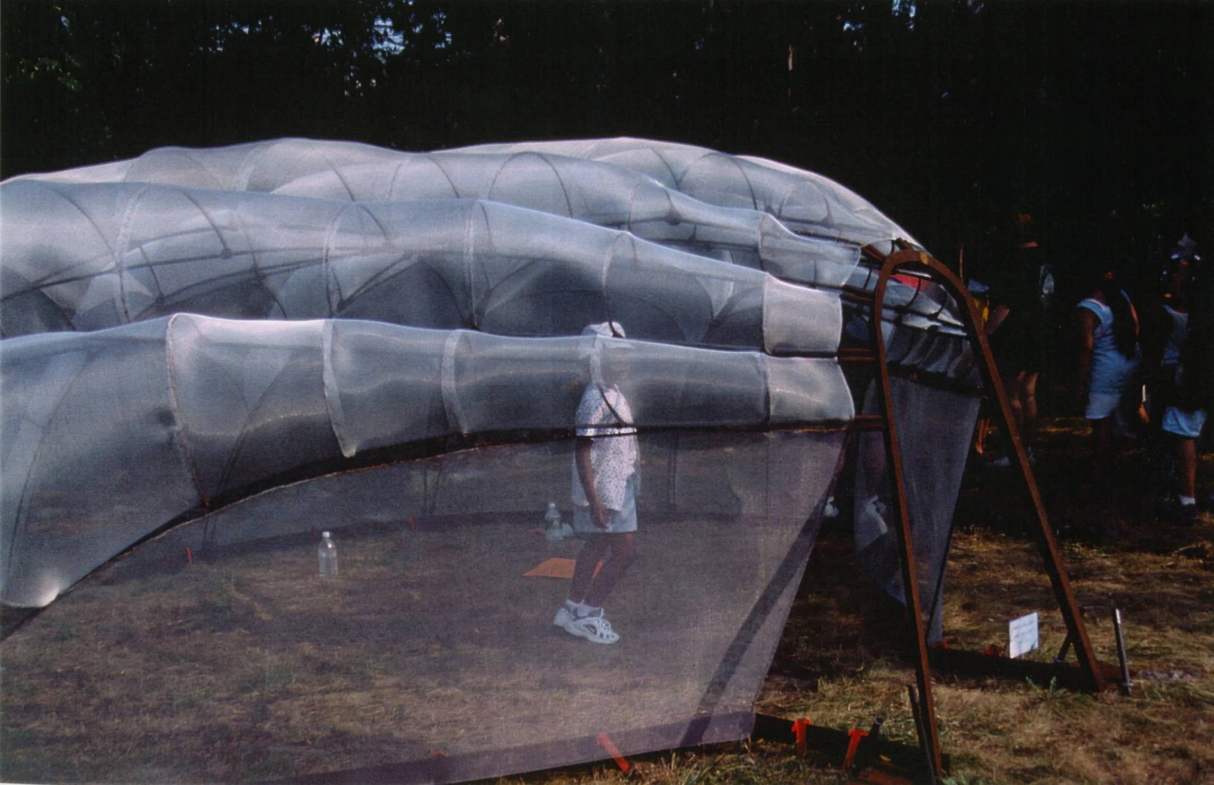 Sanctuary: Environmental Festival at McCarren Park, Brooklyn, NY; Aluminum fabric, steel; 96” x 180” x 180”; 1998