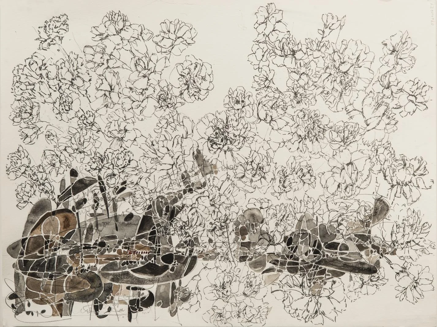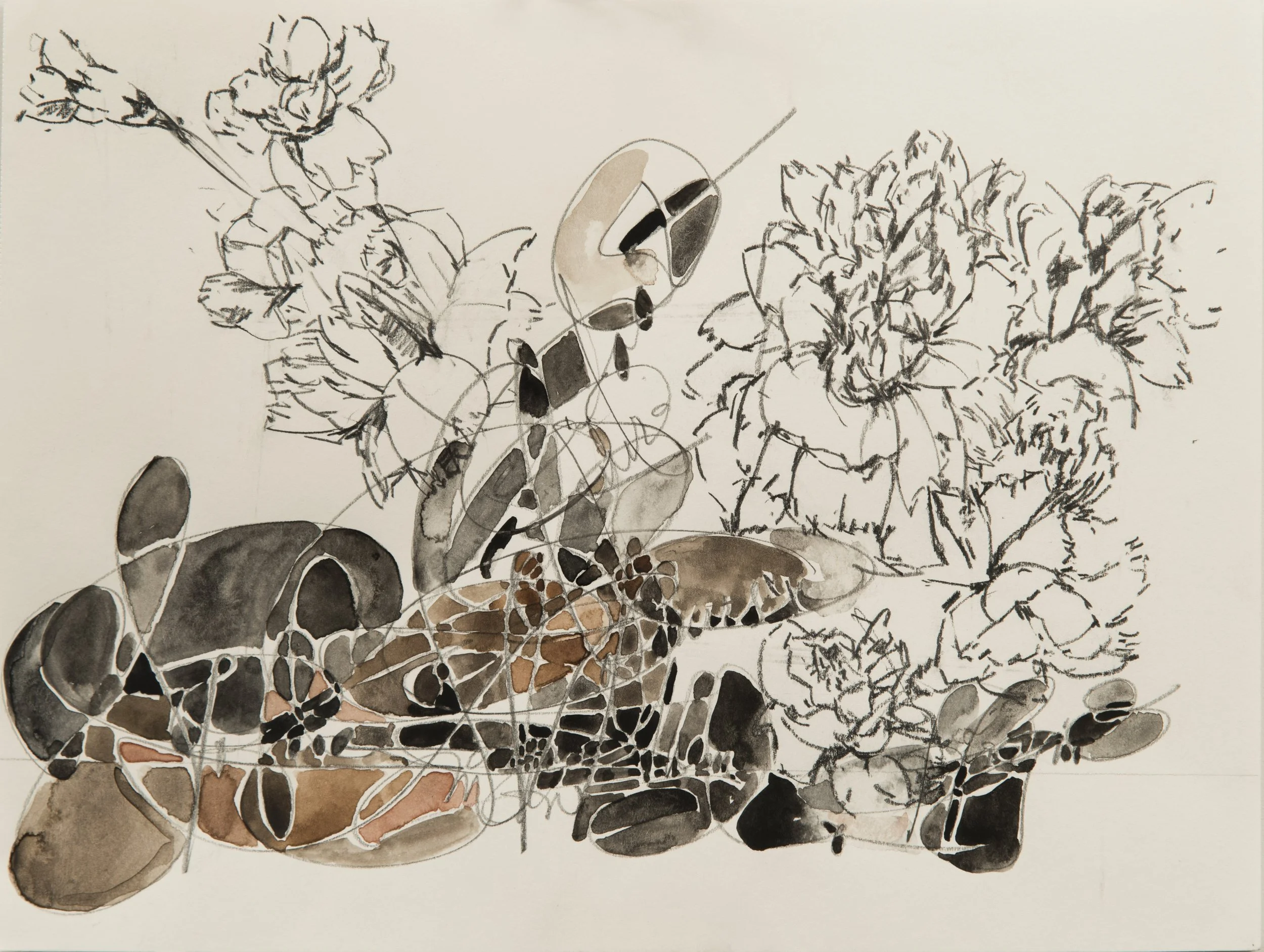 “Carnations”; 2016; Mixed media and graphite on archival watercolor paper; 18” x 24”
